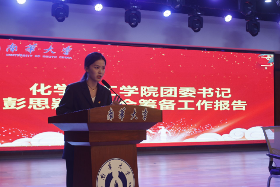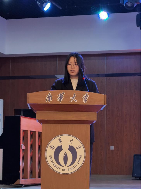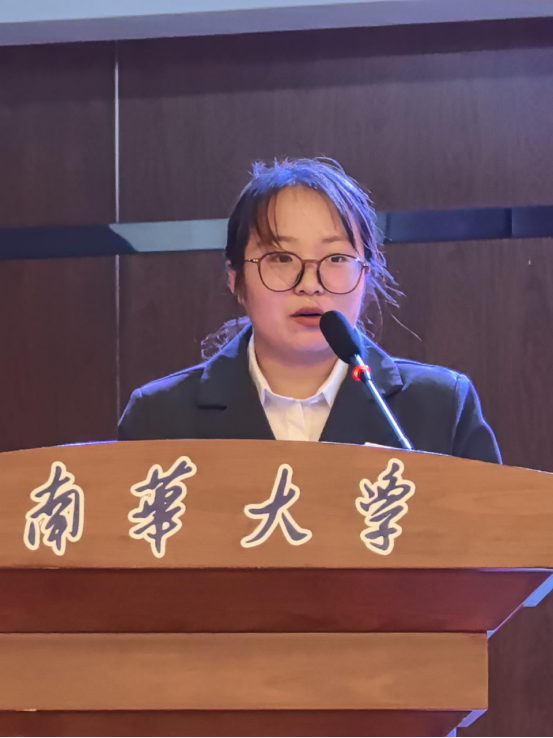 南华大学学生会代表司春微祝贺新一届学生干部,希望全体干部紧跟新时代,增强思想认识,保持团学各部门的先进性。