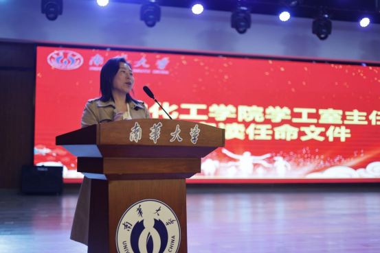 南华大学团委副书记禹敏发表讲话,希望新一届团委学生会成员,立足学院工作坚定信念,保持定力,认可自己的付出,在团学工作中取得收获。