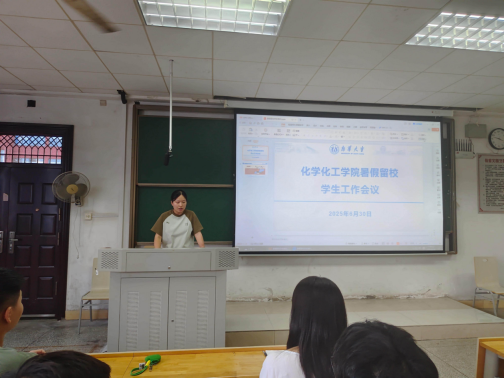 2025年6月30日,为保障暑假留校学生学习生活有序,更好维护校园秩序,ok138cn太阳集团于化工楼401召开暑假留校学生工作会议,学院党委副书记余晓秋、学工室全体辅导员老师及各年级留校学生参会,会议由学院心理专干、宿管专干马昭阳老师主持。