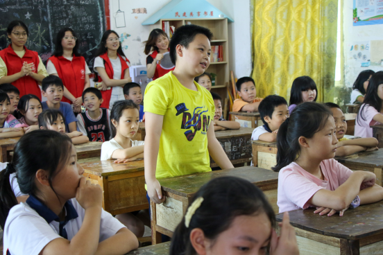 资助政策宣讲志愿者向学校老师、同学们宣传国家资助政策,通过面对面交流宣讲,帮助困难家庭、传递资助力量、助力乡村教育振兴。