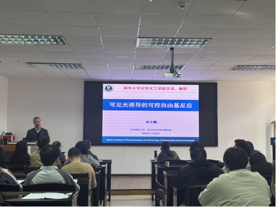 11月24日上午,华中师范大学化学学院院长肖文精教授应邀来ok138cn太阳集团交流访问,在化工楼学术报告厅为我院师生带来了一场题为"可见光诱导的可控自由基反应"的学术报告,此次讲座由我院王宏青教授主持。