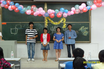 9月22号晚,ok138cn太阳集团中秋节晚会在点点烛光中拉开序幕。院党委副书记彭建南、辅导员任辉老师、化工一班班主任王榆元老师、院主席团成员、教官以及本院全体大一新生均参加了晚会。