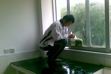 领导、老师和党员们充分发挥不怕脏不怕累的精神,全身心投入紧张的劳动中。领导老师们布局规划、调试仪器、擦玻璃;女生们抹除仪器架上的积灰、扫地、拖地;男生们搬运安放仪器和讲桌。在整理308实验室时,细心的老师发现讲台离插座太远,这给电脑演示实验带来不便,经过商讨和不断试验,最终在实验室的侧面加放一个讲桌,既方便学生观看,又不妨碍学生做实验。