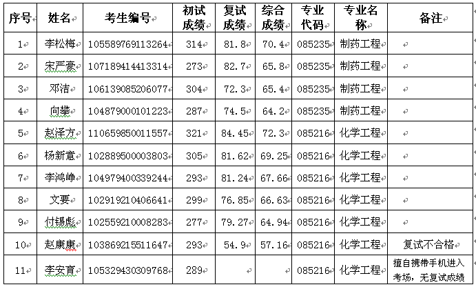 2019年长三角研究院化学工程专业、制药工程专业硕士研究生复试结果公示(第二批)