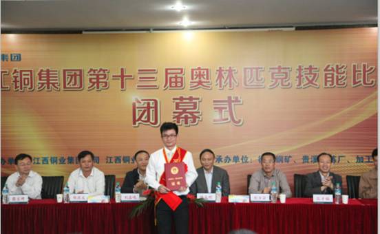 2012年10月28日,在江铜集团第十三届奥林匹克技能比赛闭幕式上给刘亮颁发“全国五一劳动奖章”荣誉证书