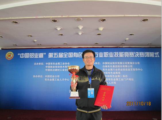 2011年10月获得第五届“中国铝业杯”全国有色金属行业职业技能大赛冠军(烟气制酸工),被授予“有色行业技术能手和“全国技术能手”