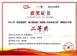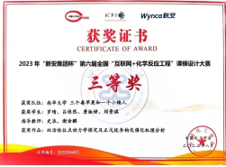 全国互联网+化学反应工程大学生课模设计大赛奖状