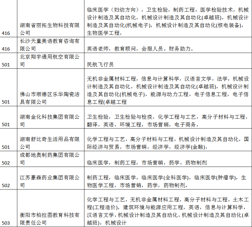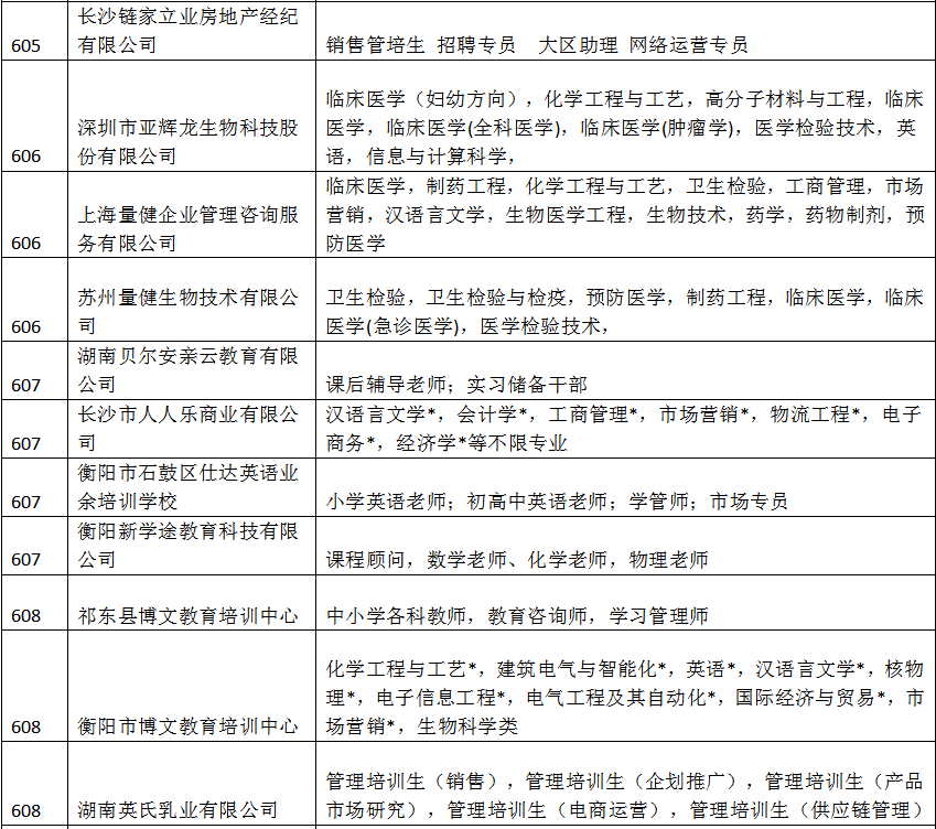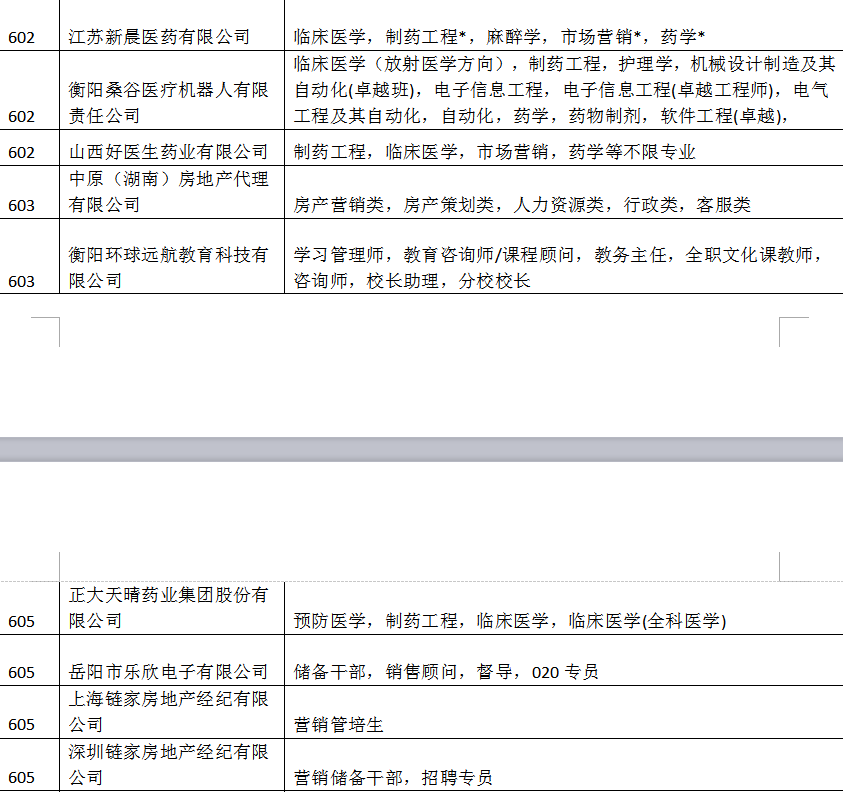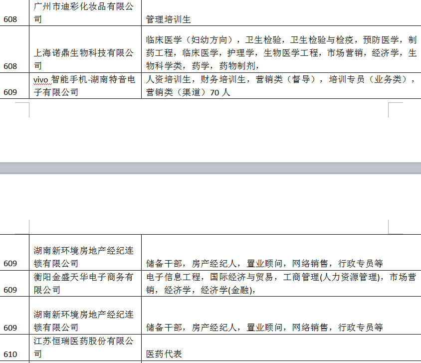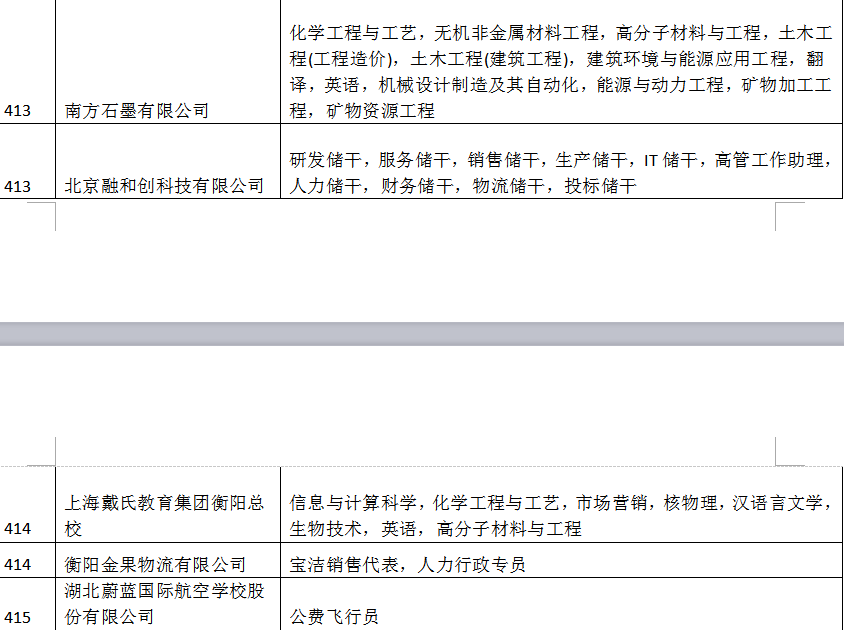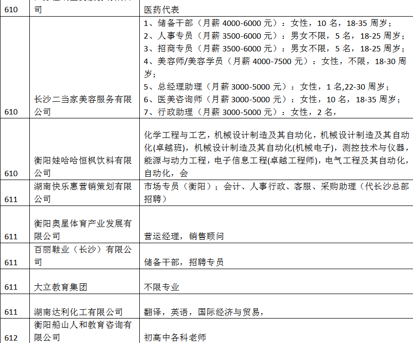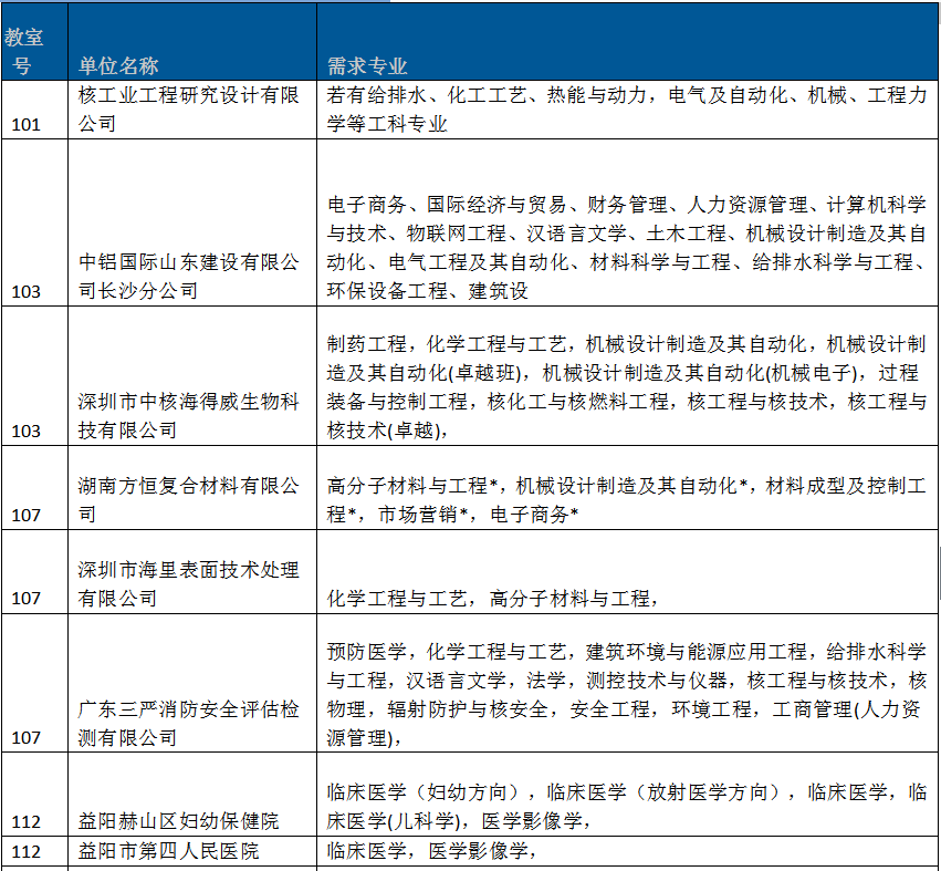 衡阳地区高校供需见面会暨南华大学2017届毕业生冬季供需见面会参会单位展位安排表