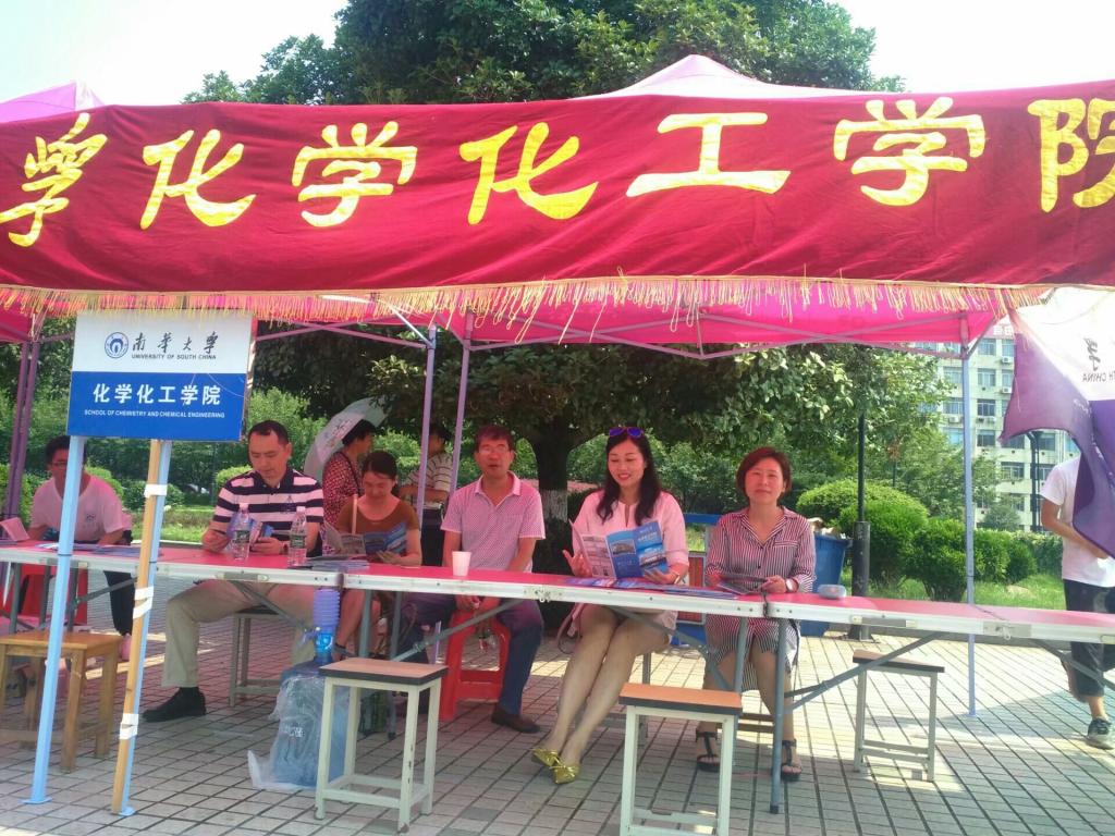 2018年6月17日上午,南华大学校园开放日“千名考生家长美丽南华行”活动于南华大学红湘校区南华广场顺利展开。ok138cn太阳集团院长王宏青,党委书记林英武,党委副书记余晓秋,化学工程系主任阳鹏飞,高分子材料工程系主任阳鹏飞,无机材料工程系主任王国平,制药工程系副主任武亚新,学工室主任陈楠等人在艳阳下热情地为来访学生和家长介绍ok138cn太阳集团的各个专业。三十余名身着“南华大学”文化衫的我院各专业学生代表组成了志愿者队伍,积极引导学生和家长参观我校各处。来访学子也好奇地围着我院的老师们积极咨询学院各个专业的情况,场面十分热闹!