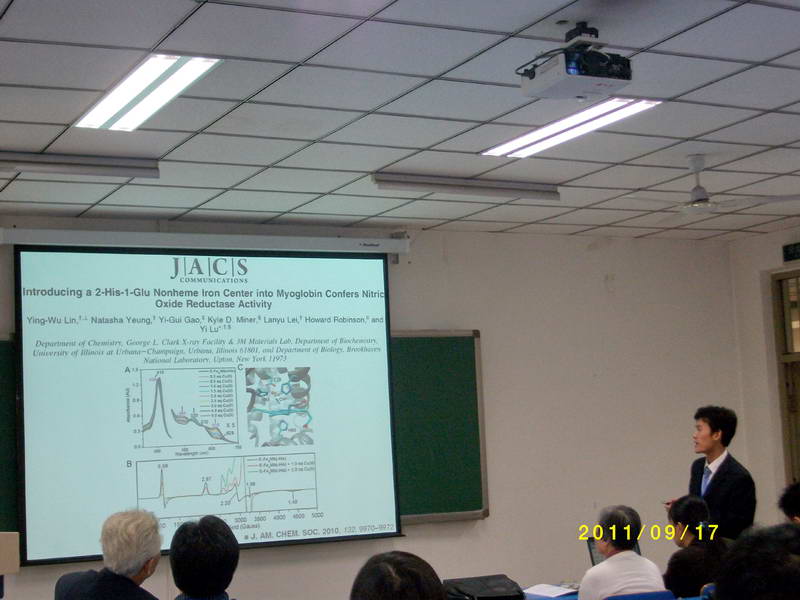 2011年9月16日至19日,第十一届全国生物无机化学学术会议在河北大学隆重召开。会议由中国化学会、国家自然科学基金委主办,河北大学、河北省自然科学基金委和河北省化学会承办。来自全国23个省(自治区、直辖市)和香港特别行政区, 近80所高校和科研院所的300余名与会代表参加了会议。 我院聂长明教授、廖力夫教授、袁亚莉教授及林英武博士参加了本次会议,林英武博士作了题为“Rational design of functional heme proteins”口头报告。