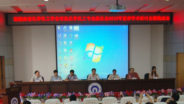 此次会议中各高校代表互相交流经验,探讨化学专业高深领域。相信通过这次会议,各高校化学方面知识将得到很大提升。会议虽然只有短短两天,又恰逢全国大学生英语四六级考试,但与会代表们仍是满意而归。省化学化工学会有机化学化工专业委员会2012年夏季学术研讨会取得了圆满成功。