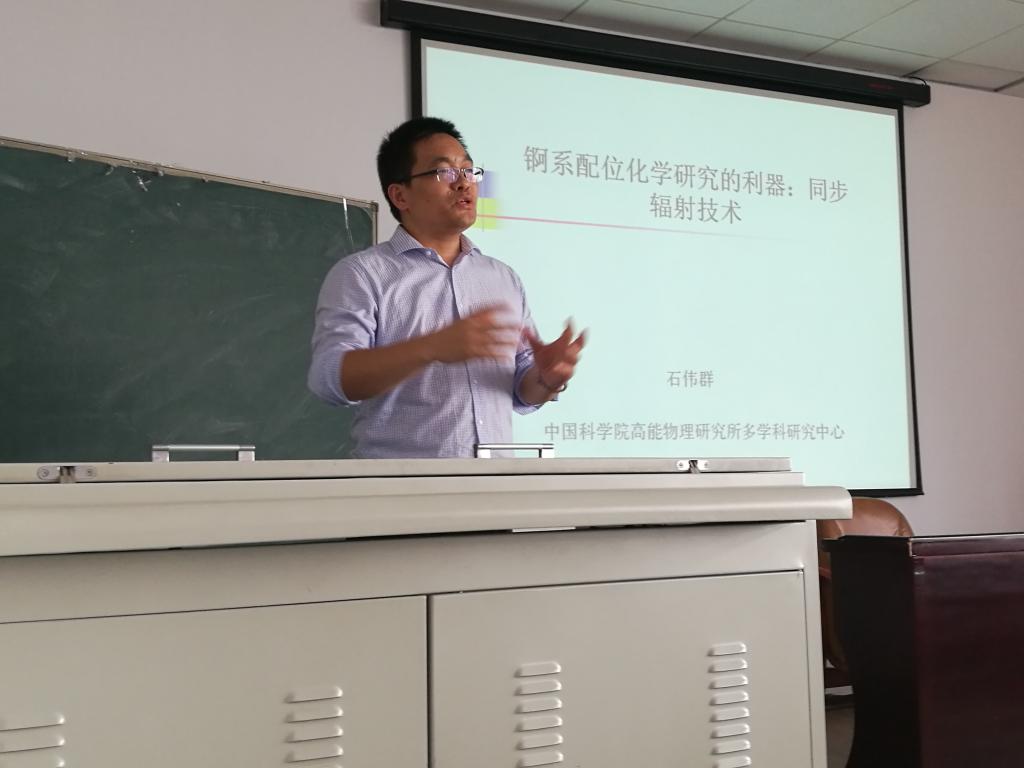 9月19日上午,由南华大学科学研究与技术开发处,ok138cn太阳集团及发展规划部联合举办的“錒系元素配位化学研究的利器:同步辐射技术”学术报告会在南华大学红湘校区第九教学楼411学术报告厅顺利举行。本次报告会的主讲人为中国科学院高能物理研究员,博士生导师石伟群教授,我院五十余位名研究生及教师到现场聆听了本次报告会。