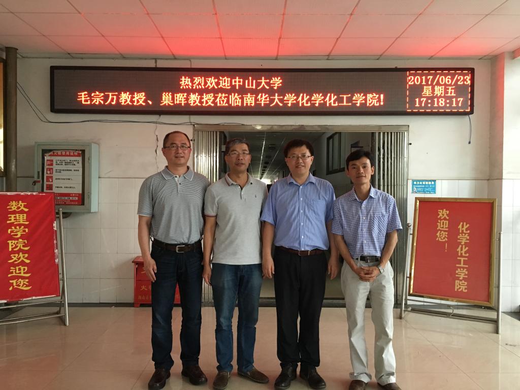 2017年6月23日上午,应ok138cn太阳集团副院长林英武教授邀请,中山大学ok138cn太阳集团院长毛宗万教授(杰青、长江学者)、副院长巢晖教授(杰青)莅临ok138cn太阳集团,分别做了题为“金属配合物及无机有机杂化材料的抗肿瘤研究”和“基于金属多吡啶配合物的生物荧光探针研究”的精彩学术报告,并与青年教师和研究生同学进行了热烈讨论,会议由王宏青院长主持。