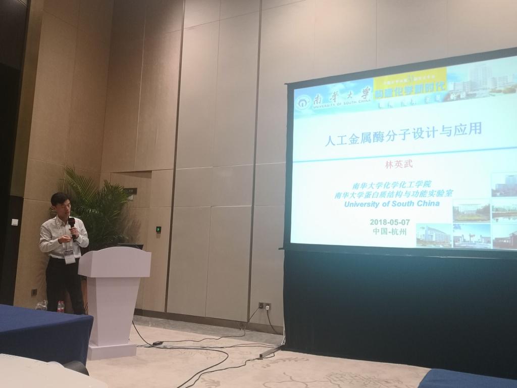 2018年5月5-8日,中国化学会第31届学术年会在浙江省杭州国际博览中心召开,我院林英武教授应邀参加生物无机分会,并做邀请报告,报告题目为“人工金属酶分子设计与应用”。我院王晓娟博士也应邀参会并做口头报告。在分会闭幕式上,中国科学院院士、南华大学杰出校友计亮年先生,给予国内生物无机化学领域的青年学者殷切的期望。
