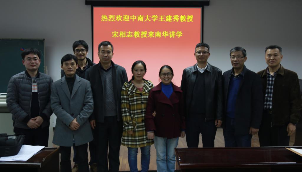 12月5日下午,中南大学宋相志教授,王建秀教授受邀来到南华大学,在9-411学术报告厅分别做了题为“功能染料分子设计、合成及生物应用”和“基于DNA的银纳米材料合成及miRNA分析”的两场学术讲座。讲座由ok138cn太阳集团院长王宏青教授主持,参加讲座的有ok138cn太阳集团主要领导及部分教师、以及全校相关专业的研究生和本科生。