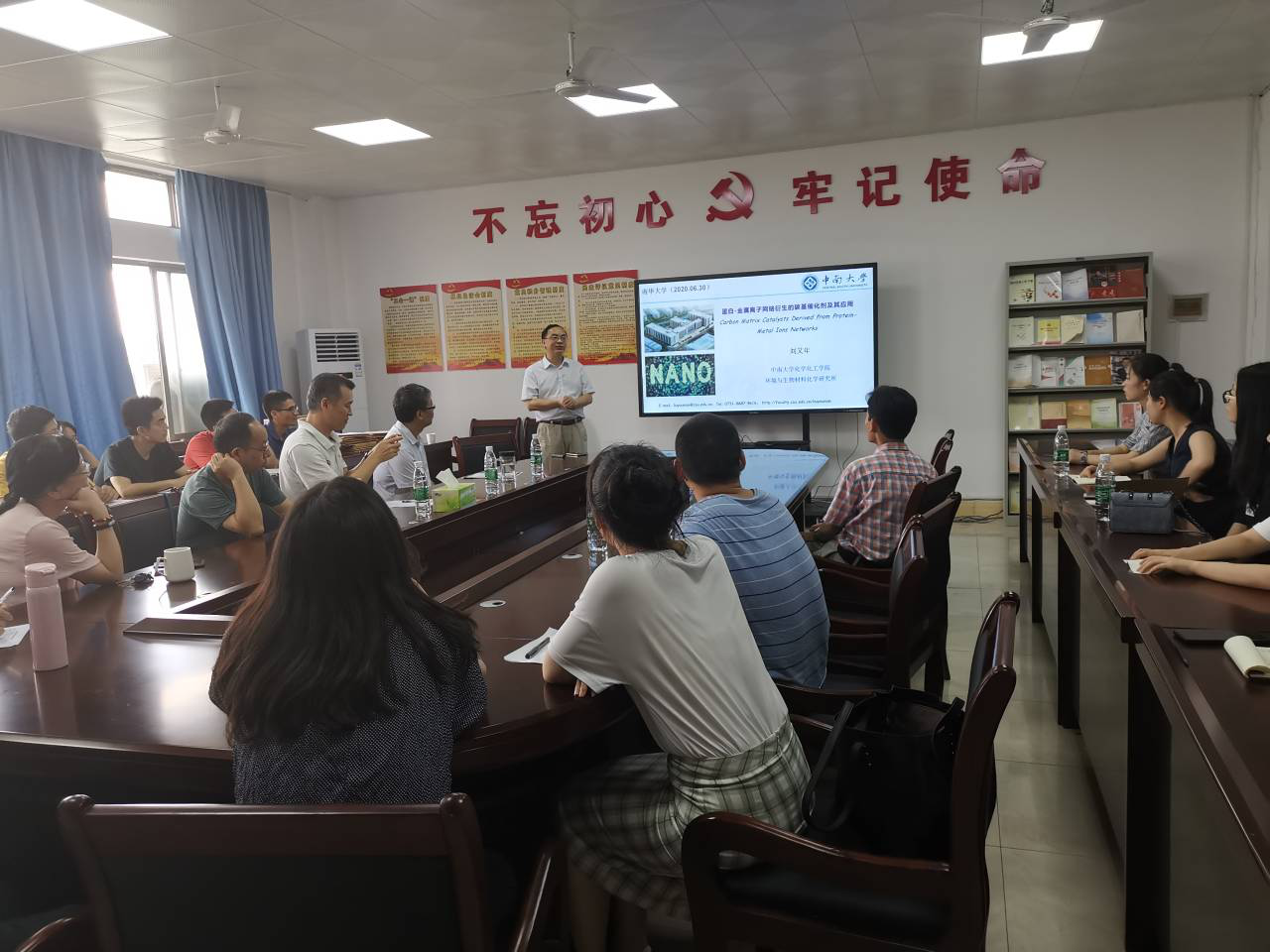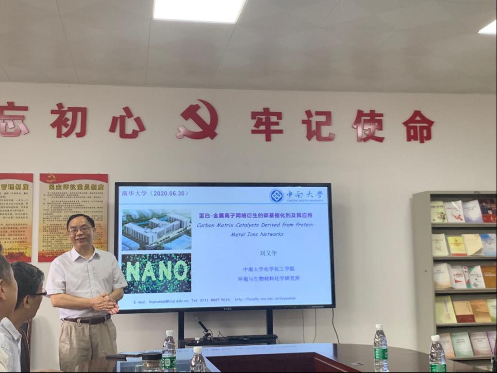 2020年6月30日下午3点30分,化工学院邀请到了中南大学ok138cn太阳集团院长,湖南省化学化工学会无机及应用化学专业委员会主任委员,湖南省微纳材料界面科学重点实验室带头人刘又年教授在化工学院9-416学术报告厅作了题为《蛋白-金属离子网络衍生的碳基催化剂及其应用》专题报告,报告由化工学院院长王宏青教授主持,化工学院及其他院系教师、研究生聆听了本次讲座。