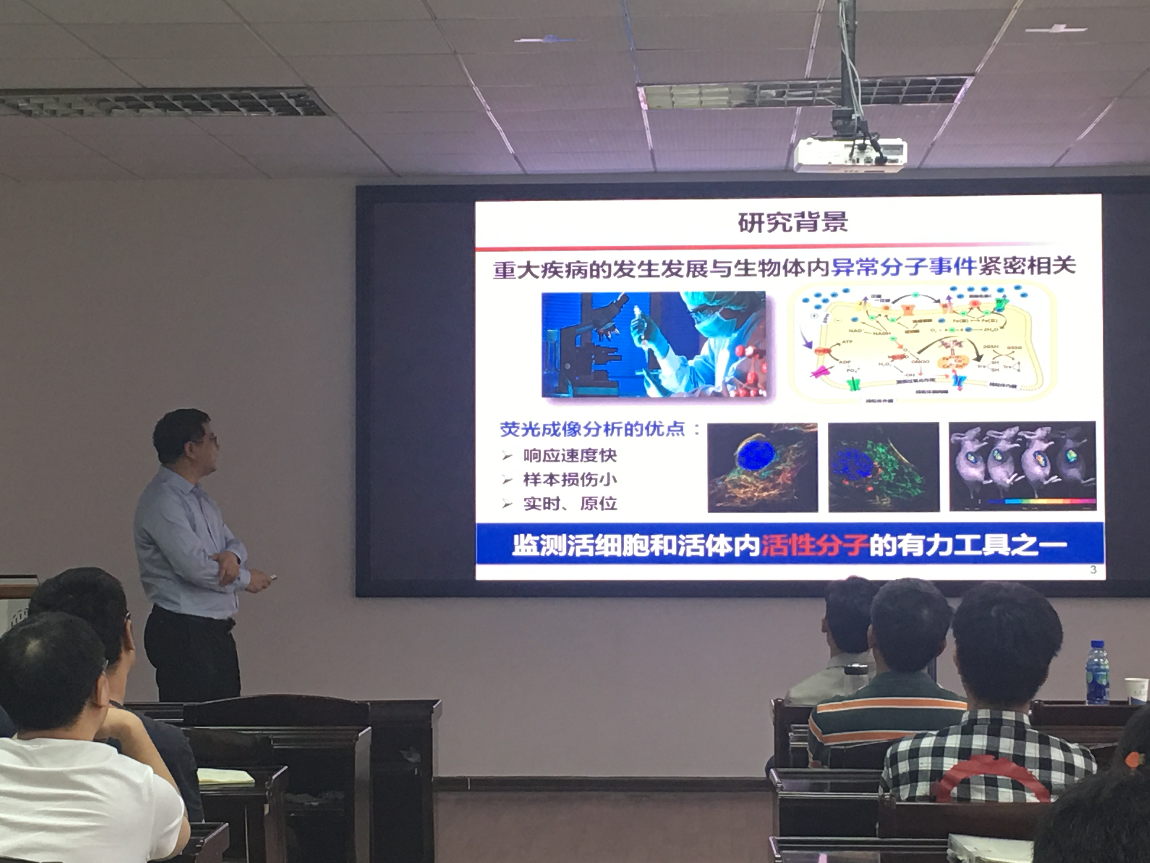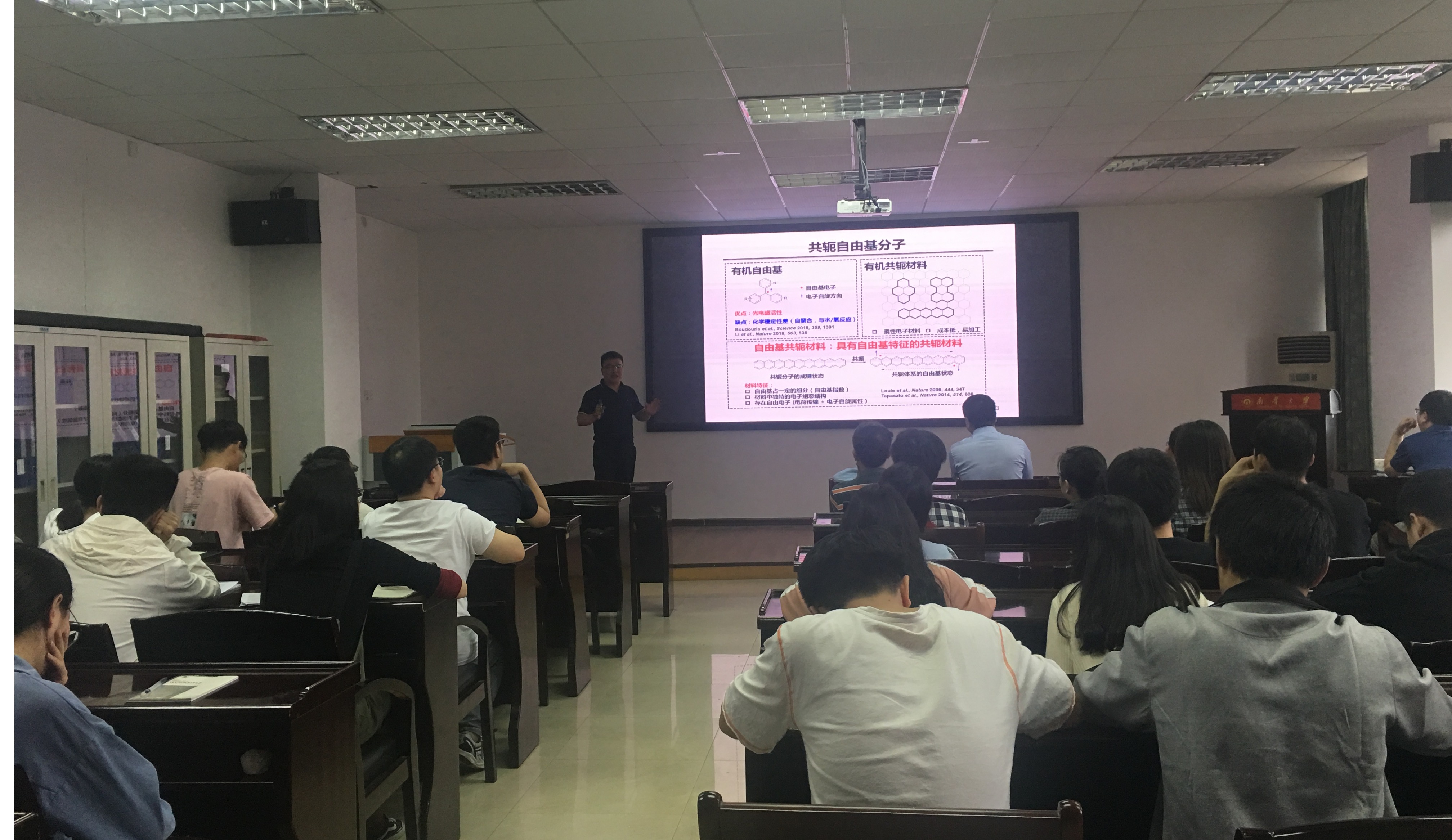 5月27日上午14点00分,湖南大学袁林、曾泽兵教授在我院9-411学术会议报告厅,分别作了题为“共轭自由基及其磁学性质研究”、“有机荧光染料性能调控及其成像分析应用” 的学术讲座,讲座由ok138cn太阳集团院长林英武教授主持,化工学院部分领导和教师,以及全体研究生参加并聆听了此次讲座。