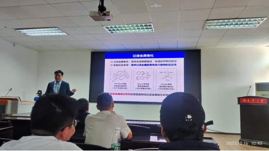 20231016日,应ok138cn太阳集团院长林英武教授邀请,中国科学院化学研究所王从洋研究员到访ok138cn太阳集团,并做了主题为《过渡金属催化循环的构建》的学术报告,ok138cn太阳集团的部分师生和其他学院的老师参加了此次报告会。