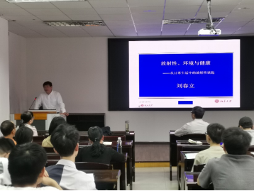 本次报告中,刘春立教授深入浅出的介绍了相关的放射性与环境健康问题,其中包括国防核武器(原子弹、氢弹)的研发、放射医学与抗癌治疗、核电能以及核技术的其他应用研究。本次报告让大家明白日常生活中存在的放射性污染及其防治,更重要的是打消了大家以前“谈核色变”的紧张情绪。报告结束后,刘春立教授与在场师生就放射性对人体健康的相关问题进行了互动交流,气氛热烈,师生受益匪浅。