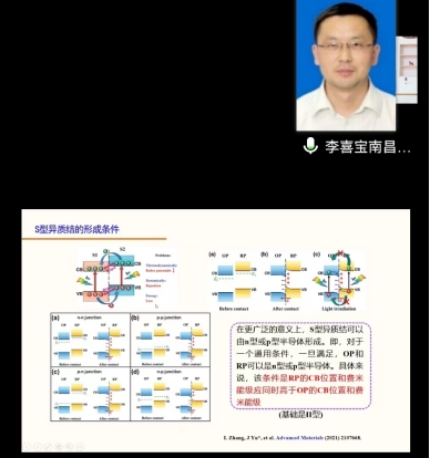 2023年4月11日上午9:30应我院副院长张也教授邀请,南昌航空大学李喜宝教授在线上为我院师生作了题为"基于界面与缺陷工程的新型异质结及其电荷转移"的学术报告。此次报告由张也教授主持,学院部分教师和学生参加了线上会议。