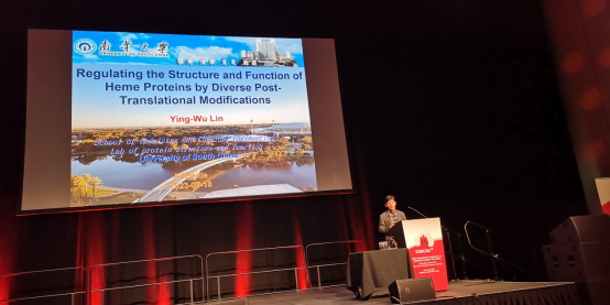 2023年7月16-20日,我院院长林英武教授应国际生物无机化学会议组委会邀请,赴澳大利亚阿德莱德市参加第20届国际生物无机化学会议,并在做题为“Regulating the structure and function of heme proteins by diverse post-translational modifications”的邀请报告。