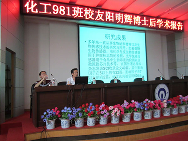 5月20日,ok138cn太阳集团981班校友阳明辉博士后在图书馆报告厅进行有关生物纳米材料在传感器中的应用的学术报告。现场座无虚席,许多化工专业人士及相关专业的学生前来听阳明辉博士后的讲座。