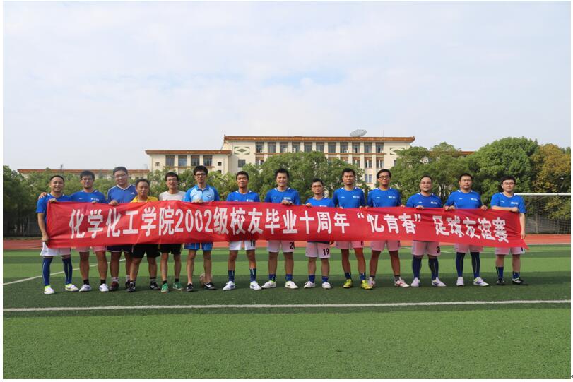 10月2日下午3点,ok138cn太阳集团2002级精工、化工和高材专业的部分毕业十周年回母校聚会,为了回忆十多年前在校读书期间,在运动场上拼搏的场景,检验自己的体能还是不是保持当年的水平,以及活跃校友聚会活动的气氛,校友们在南校运动场举办了一场2002级校友毕业十周年“忆青春”的足球友谊赛。院党委副书记彭建南亲临运动场为校友们加油给力,并为校友们拍照留念。