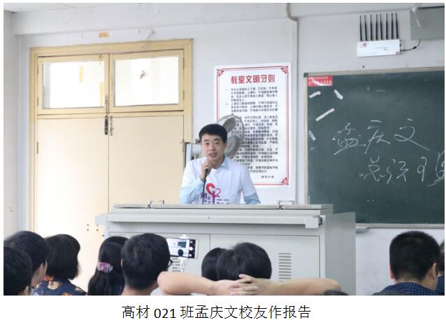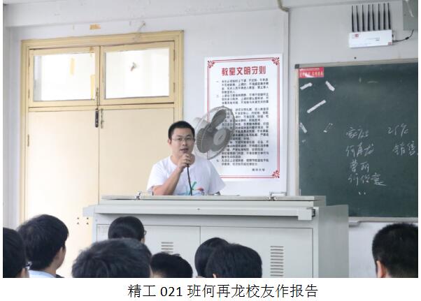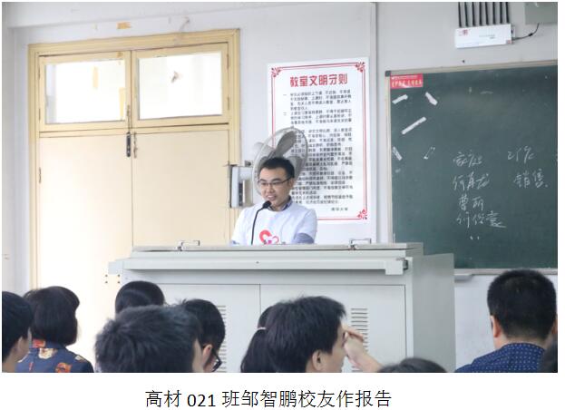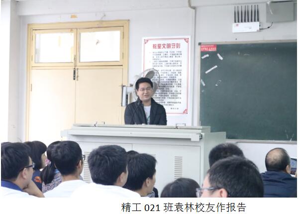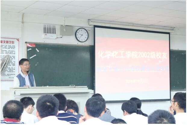 学院特邀请2002级化工、精工、高材专业班的5位优秀校友代表为师生们作学术科研、职业规划、就业创业报告。首先是精工021班现为湖南大学教授、博士生导师袁林作学术报告,接着是精工021班何再龙、高材021班孟庆文、高材021班邹智鹏、工分021班翼东等作就业创业报告。他们分别在学术科研、销售行业、继续深造、自主创业等方面都取得了优秀的成绩,都成为学术上带头人、部门的总经理或经理、企业的骨干。他们分别介绍了自己的求学经历、工作经历,以及取得的成果,与大家共同分享。全场师生都为这些优秀校友代表感到高兴和自豪。