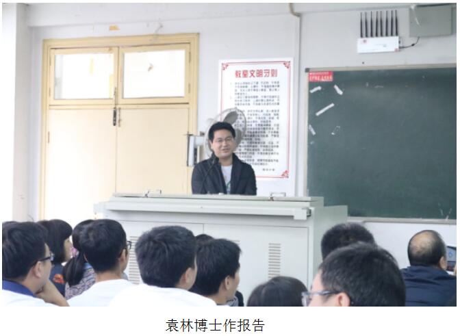 袁林博士从自己学习和工作经历、研究方向思路、以及现在科研工作条件、科研团队、主要重大科研成果等方面给师生作了精彩报告,得到全场师生的敬佩,大家都为他高兴和自豪。同时袁林博士分享了个人的成才求学经历以及在湖南大学的执教经验,提醒在校大学生要明确个人目标,提前做好职业规划和就业规划,脚踏实地扎实专业知识,做到胸有成竹,立志成才。
