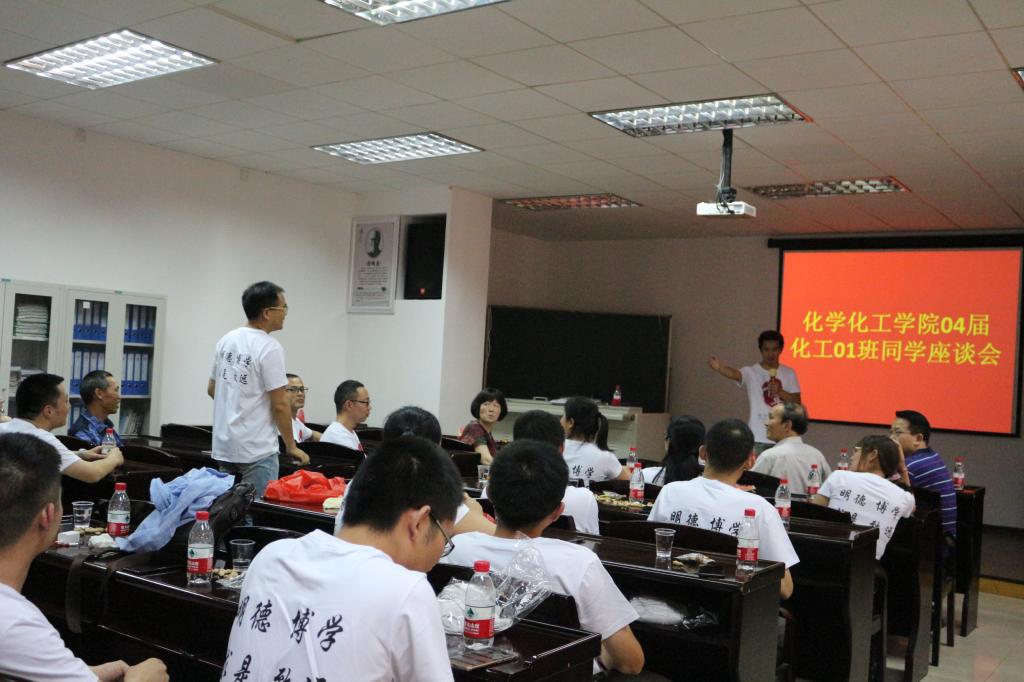 2018年5月26号下午,04届化工01班的校友第一次回母校兑现他们毕业时许下的十年之约,于第九教学楼ok138cn太阳集团411学术报告厅召开校友座谈会,应邀参会的有ok138cn太阳集团前任党委书记聂长明教授、廖力夫教授、王延飞教授、贺楚华老师、丁娟老师和肖志海老师等。