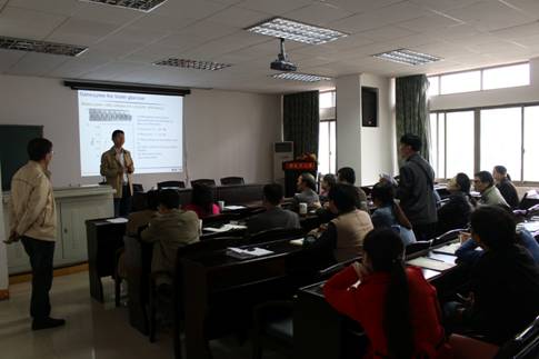 2015年4月20日上午,应南华大学“蒸湘学者”林英武教授邀请,南京大学现代工程与应用科学学院魏辉教授来我校进行学术访问,参观了南华大学蛋白质结构与功能实验室和ok138cn太阳集团,并做了“纳米模拟酶及其生物应用”精彩学术报告,与青年教师和研究生进行了学术讨论,会议由王宏青院长主持。魏辉教授2014 江苏省入选“双创计划”人才计划。其研究领域涉及生物纳米功能材料、生物纳米医学、体外诊断与个体化诊疗等,相关研究成果在Nature Nanotechnology、Chemical Society Reviews、Analytical Chemistry等国际权威学术期刊上发表40篇余SCI论文,被引用2000余次,H-index为26。