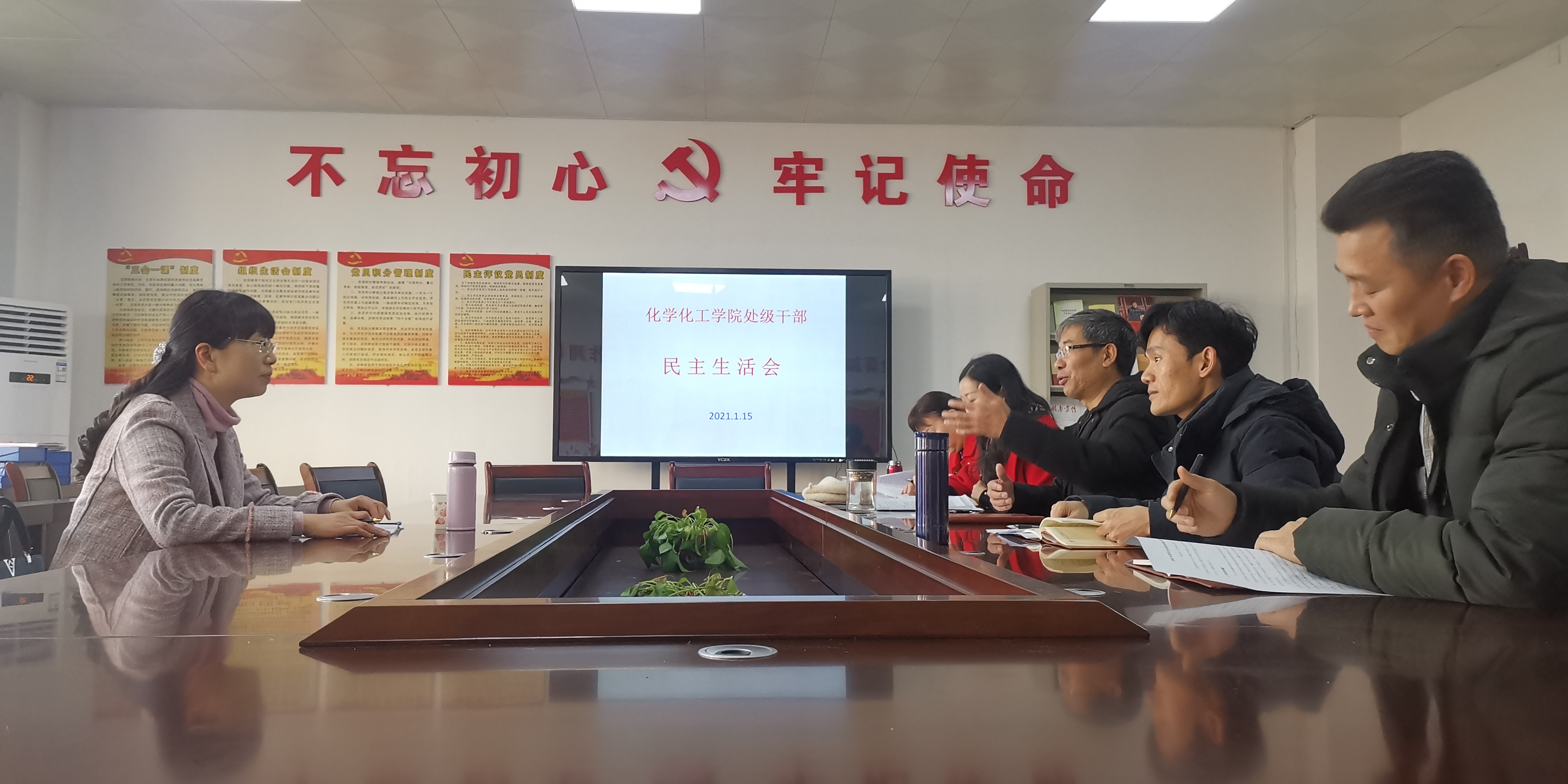 化学化工学院于115上午化工党建活动室召开2020年度处级党员领导干部民主生活会。校党委委员、副校长何旭娟出席指导,全体院领导、党委委员参加,会议由学院党委书记王宏青主持。