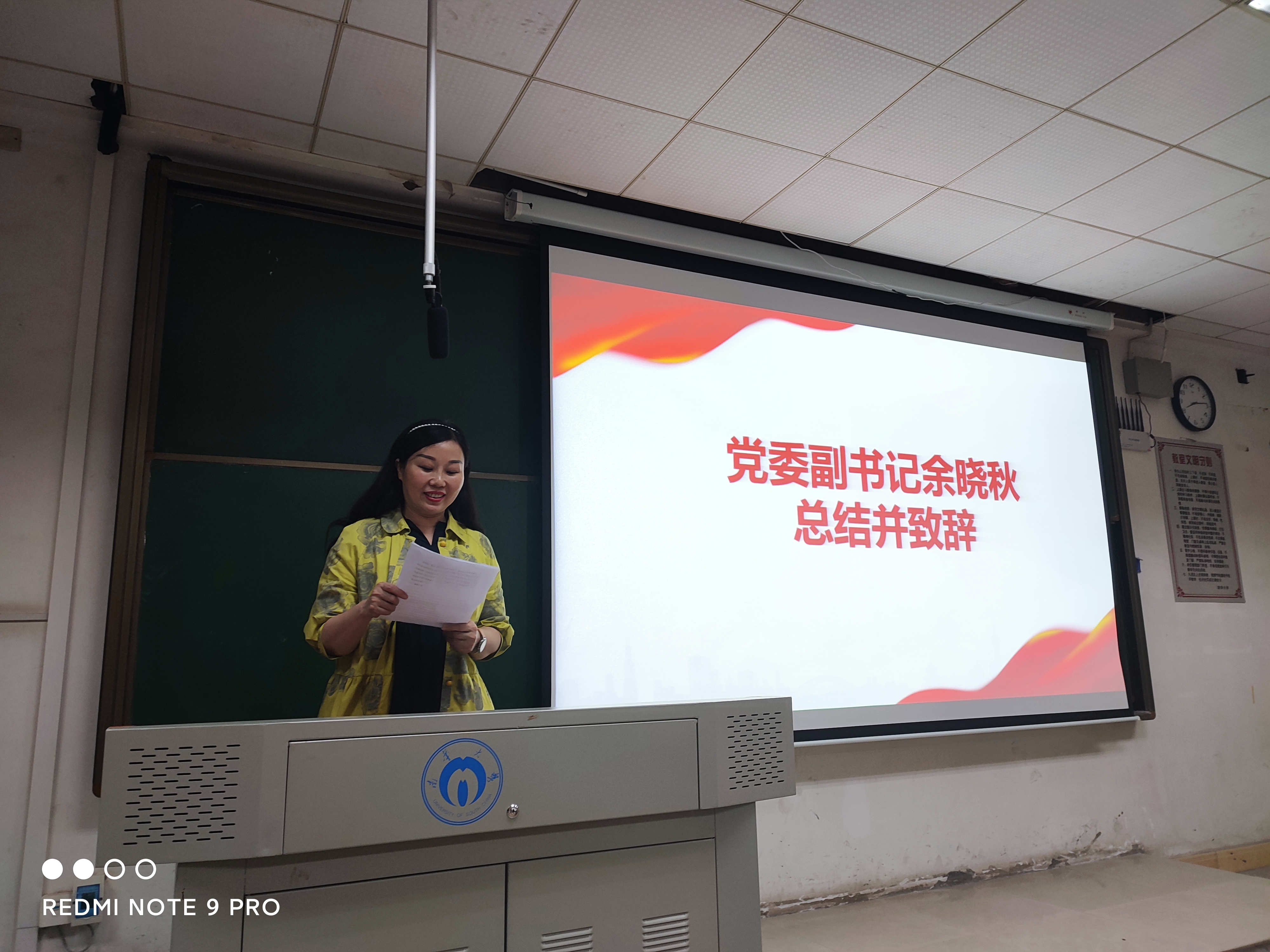 528日晚,南华大学化学化工学院16期入党积极分子培训班结业典礼于化工401教室举行。学委副书记余晓秋老师、学工室主任陈楠老师,化学工程及无机非金属材料专业学生党支部副书记颜晔老师、学院团委书记钱通华老师以及第十六期入党积极分子培训班所有学员参加了此次典礼。