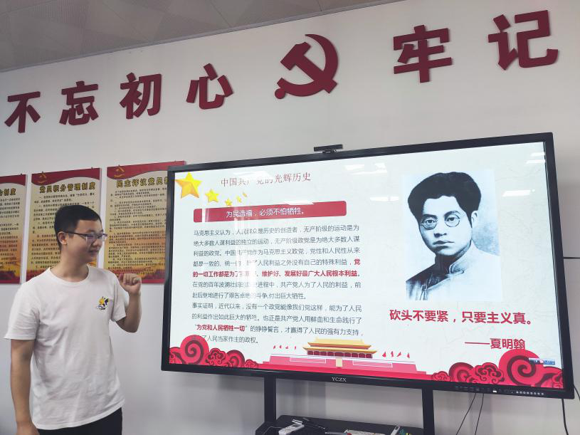刘桢同志以“学史崇德”为主题,主要从“崇尚对党忠诚的大德”、“崇尚为民造福的公德”和“崇尚严于律己的私德”三个方面展开宣讲。他结合夏明翰、张富清、张桂梅和我校资源环境与安全工程学院教授、中国铀矿采冶学科开拓者丁德馨老师的光辉事迹,讲述了当前人民生活水平不断提高、综合国力不断增强、在抗击新冠疫情中取得伟大的胜利等这一系列成果证明了只有坚持党的领导,坚持党的理论和方针路线,才能更好地发展中国,才能实现中华民族的伟大复兴。