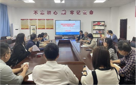 2023108下午化学化工学院在化工416会议室召开学习《诊断评估专家组审核评估报告》会议。会议由副院长张也主持,院长林英武院党委书记王宏青、副书记余晓秋、副院长何卫民、各系室主任及实验中心主任参会。