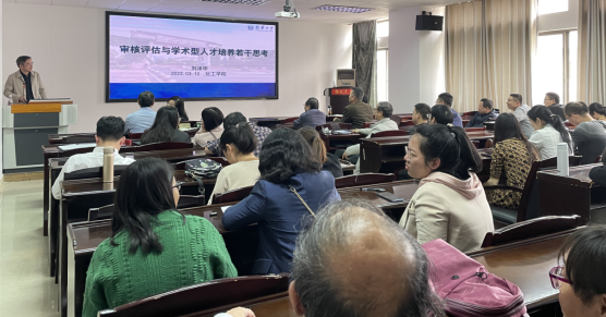 王宏青围绕“深入学习党的二十大精神,推动审核评估工作开展”作了专题宣讲,希望大家能以饱满的热情和良好的精神面貌迎接此次太阳集团tyc9728审核评估。林英武以“凝心聚力,做好审核性评估工作,落实学术性人才培养方针”的专题报告动员大家,希望大家都能在此次评估中同心同力。刘泽华在报告中首先介绍了新一轮审核评估的精髓要义,讲述了此次评估的新变化和背景特点,之后结合我校的办学情况和办学目标解释了我校选择学术型人才培养的原因,并指出如何强化基础理论、推进科教融合、加强四新建设、改进学业评价是学术型人才培养的关键问题。最后,张也以怎么培养化学类学术人才带着大家一起探讨思考如何做好此次审核评估。